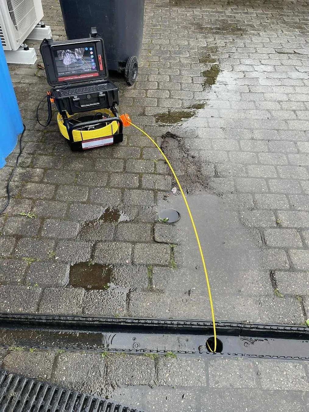 Et avløp fra aquadrain som var fullt i stein som stoppet vannet.